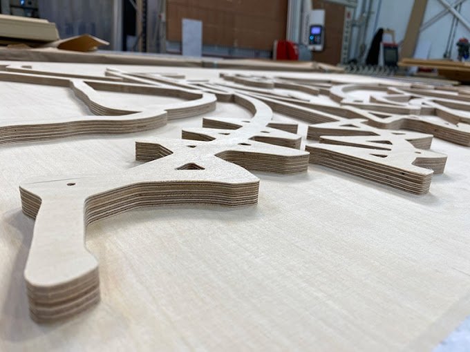 Cortamos, grabamos, tallamos todo tipo de madera y placas. Madera noble, MDF, melaminas, fenólicos, OSB y aglomerados en nuestro CNC de 1,80m x 2,80m y grabamos y cortamos piezas pequeñas y plásticos con nuestro láser de 40cm x40cm de espacio de corte.